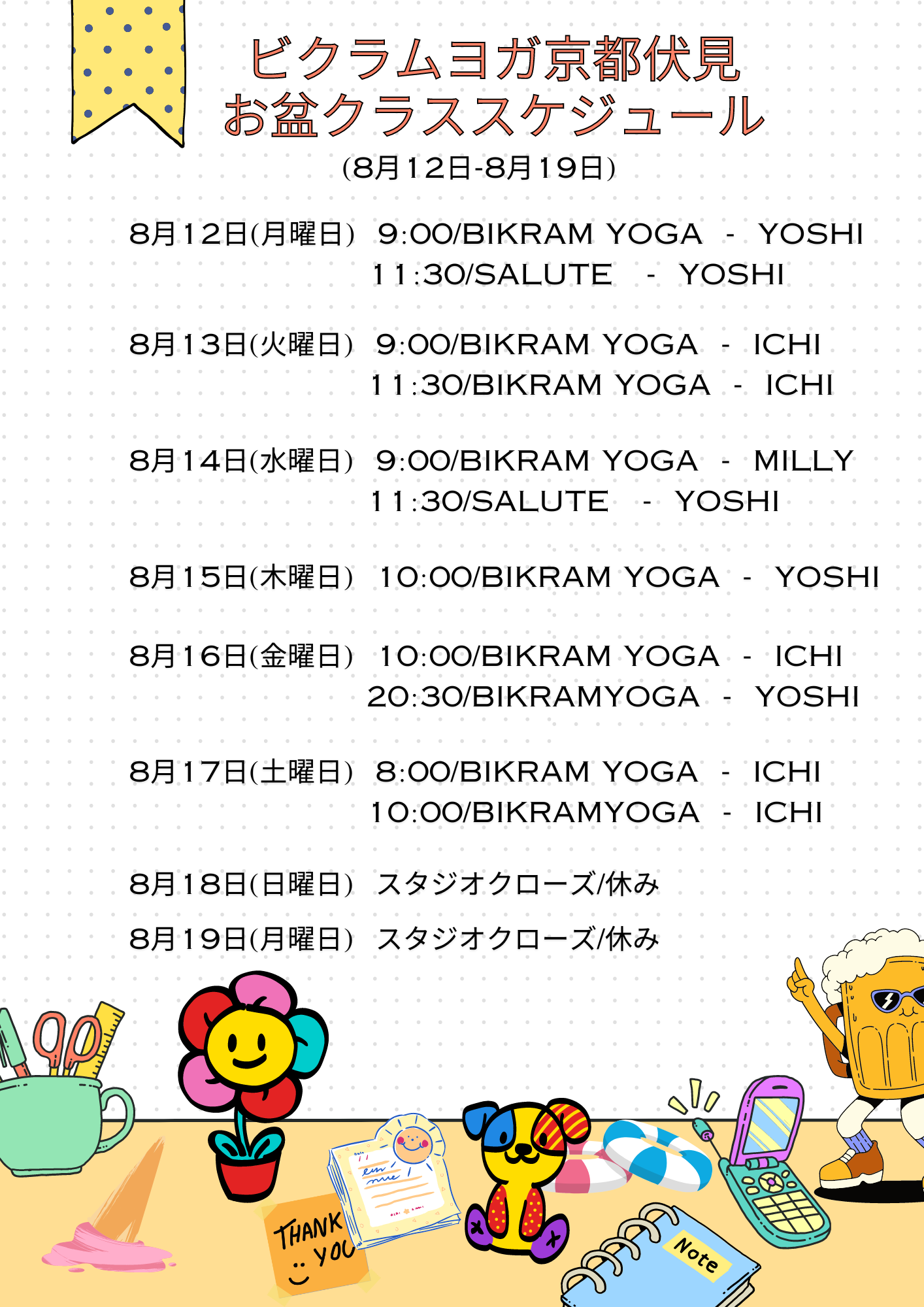2024年8月12日(月)~19日(月)お盆スケジュールのお知らせ
